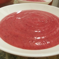 Blend the cranberries with water for at least 1 minute. Then add the dates and continue blending. Next, add the banana and mix until smooth.