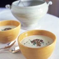 Cream Soup of Cauliflower with Wild Mushrooms and Chives