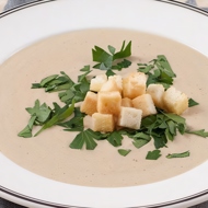 Cream Soup of Porcini Mushrooms with Truffle Croutons