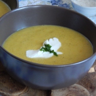 Serve hot with a spoonful of sour cream and a sprig of parsley.