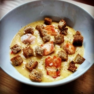 Cut the processed cheese into small pieces. Melt it in the reserved cup of broth in a pot.