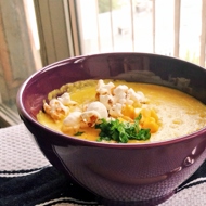 Creamy Corn Soup with Ginger, Cream, and Popcorn