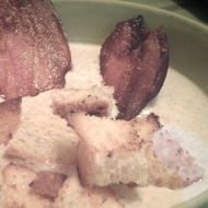 Creamy Mushroom Soup with Croutons and Bacon Chips
