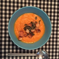 Chop the pumpkin finely, add it to the onion, and sauté for 2–3 minutes. Add water and salt. Cook over medium heat for 10 minutes until the pumpkin is tender. Blend the soup until smooth, then stir in the cream. Return to the heat and bring to a boil.