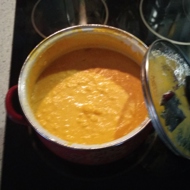 Cut the pumpkin into cubes and boil in a small amount of water (2 liters) until soft.