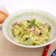 Thinly slice the leek, finely chop the savoy cabbage, and boil everything in a pot of salted boiling water for 2-3 minutes. Drain and rinse under cold water.
