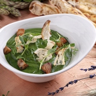Creamy Spinach and Sorrel Soup with Wild Mushrooms