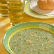 Note: You can season the soup with lemon juice if desired. For your health! Spinach leaves are rich in proteins, vitamins, potassium, magnesium, phosphorus, and iron. The beneficial substances contained in it help strengthen blood vessels, teeth, and gums. Due to its remarkable nutritional properties and rich chemical composition, this leafy vegetable is very important for a healthy, balanced diet. Per 100 g: 35.2 kcal, protein – 2.0 g, fat – 2.0 g, carbohydrates – 2.3 g