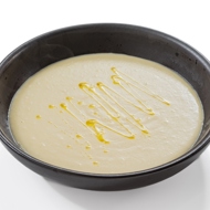 White beans are subtle beans. Overall, all the other ingredients support their gentle flavor. To keep this combination interesting, we've added a few drops of vibrant truffle oil to the soup.