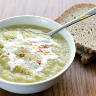 Blend everything with an immersion blender, but do not make it completely smooth. Season with salt and pepper.