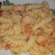 For the sauce, melt the butter in a saucepan, add the shrimp and sauté until they turn pink. Remove the shrimp and set aside. In the pot where the shrimp were cooked, add the wine, chopped tomatoes, spices, cream, and finely chopped cheese. Simmer on low heat for about 10 minutes.