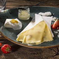 Spread a thin layer of cottage cheese on the finished crepes and fold them into an envelope.