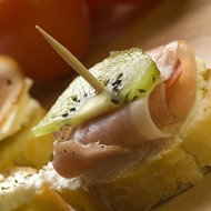 Place the kiwi rounds on top of the cream cheese, alternating with slices of ham.