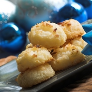 Grind the coconut into fine crumbs. Add the powdered sugar and flour, and mix well. Then, incorporate the egg whites and chilled butter. The mixture should be a smooth, slightly runny paste.