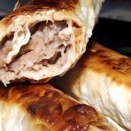 Roll it up. Then fry in a pan on both sides or brush with oil and bake in the oven.