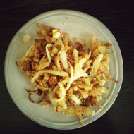 Transfer the finished onions to a plate lined with a paper towel to drain excess oil.