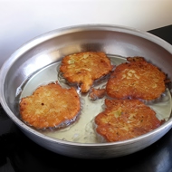 Vinegar can be replaced with lemon juice, or you can substitute baking soda and vinegar with baking powder. You can increase the amount of oats (use the largest type #1) and add enough flour to achieve a batter consistency similar to very thick sour cream. Thanks to the oats, the pancakes turn out very fluffy with a crispy crust.
