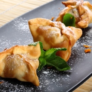 Crispy pastry pockets filled with banana and dates