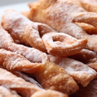 Remove the finished crispy pastry from the fat with a fork onto a sieve or paper and sprinkle with sugar mixed with vanilla, zest, or cinnamon.