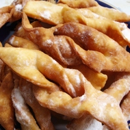 Roll out very thinly and bake in vegetable oil, then sprinkle with powdered sugar.