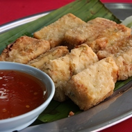 Pour oil into a wok or frying pan to a third full and heat it to 356°F. Fry the tofu until golden brown. Then transfer it to a paper towel.