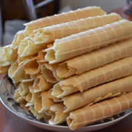 The key is to roll the waffle very quickly right after taking it out of the waffle maker. Otherwise, it won't be possible to do it later. You can fill it with any kind of filling. For example, sweetened condensed milk or apple jam.
