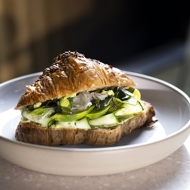 A playful take on a trendy big green salad — the croissant is filled with avocado, seaweed, cucumber, and edamame beans. This healthy combination doesn’t need any dressing, but you can drizzle it with lemon if you like. Recipe by Chef John Smith from a popular American café.