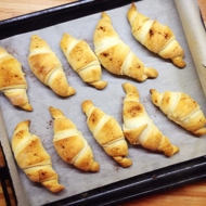 Place the croissants on parchment paper, sprinkle with cinnamon, and send them to a preheated oven at 356°F for 15–20 minutes.