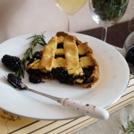 Wash the mulberries, place them in a pot, add the wine, sugar, and rosemary, and cook until the sugar dissolves. It is important to gently stir the berries to keep them whole.