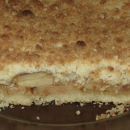 Peel the apples and slice them into thin rounds. Arrange them in the prepared dish with the dough. Sprinkle with sugar and cinnamon. Top with the crumbly mixture so that the apples are not visible.