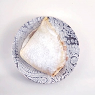 Fold the resulting pancake in half and then in half again to create a quarter circle (like a small crepe), and bake at 284°F for 45 minutes. Allow it to cool, and before serving, sprinkle with powdered sugar.
