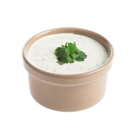 A traditional Indian sauce, also known as a soup: yogurt, finely chopped cucumbers, and spices. It should be served cold, taken out of the refrigerator at the very last moment.