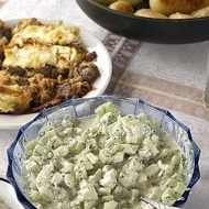 Mix the cucumbers, garlic, herbs, add sour cream and salt to taste.