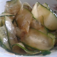 You can cut the cucumbers into pieces for easier eating, but slicing them into ribbons looks more impressive.
