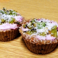First, bake the cups. Take the oat flakes and grind them into flour using a blender. Add the egg white and a pinch of salt to the resulting flour. Sugar is optional. The dough should be thick like a pâté.