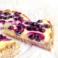 Pour the finished cream into the prepared base, sprinkle with berries (you can use them frozen).