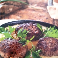 Serve at the table in the same skillets in which the dish was prepared, garnished with sprigs of parsley.