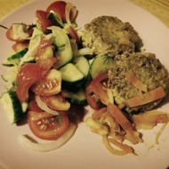 For the sauce, grate the carrot or cut it into wedges. Slice the onion into half-rings. Sauté the carrot and onion in the same pan where the cutlets were cooked. Add tomato paste or grated tomatoes, salt, pepper, garlic, a little water, and let it simmer for about two minutes.