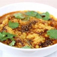 Boil the red lentils with garlic, grated ginger, cumin, turmeric, and cayenne pepper until it forms a puree.