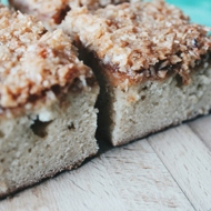 Remove the cake from the oven and quickly spread the prepared topping over it. Return to the oven for 5–10 minutes.