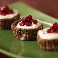In a tartlet mold, place 2 tablespoons of the chocolate-nut mixture and press it firmly to the bottom of the mold with your fingers. Remove the tartlet from the mold.