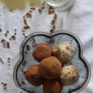 Roll into balls and coat them in cocoa, coconut flakes, sesame seeds, or cinnamon.