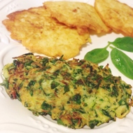 In a frying pan, melt a piece of butter in the oil (I prefer grapeseed oil). Spoon the fritters onto the pan, flatten them, and cook over medium heat on both sides until golden brown.