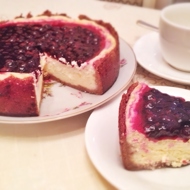 For the topping, I used frozen currants, which I cooked for 5 minutes (the so-called five-minute topping) with sugar and cinnamon. I soaked the gelatin beforehand; when it swelled, I slightly warmed it in the microwave, poured it into the saucepan with the currants, and stirred until dissolved. I poured the berries with syrup over the baked cheesecake and placed it in the refrigerator.