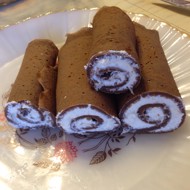 Spread the filling over the pancakes and roll them up; each pancake can be cut in half.