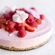 In a bowl, add the cream cheese, coconut sugar, blended berries, coconut cream, 1 tablespoon of lime juice, and lime zest, and mix well until smooth. Add the gelatin to the mixture.