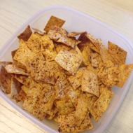 Spread the future chips in a thin layer on a baking sheet lined with parchment paper (it will absorb excess oil) and bake in a preheated oven at 356°F for about ten minutes, stirring occasionally to ensure they dry evenly, until ready — the chips will become golden and crispy, breaking easily.
