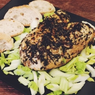Serving suggestion: place the chicken on a bed of celery and add a few slices of crispy French baguette.