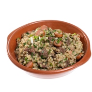 To make spelt dirty, take clean spelt and add chicken liver to it. The liver will cook down and visually stain the spelt. The dish looks quite intimidating in the end, but liver lovers will appreciate it. You'll need to soak the spelt well in advance; otherwise, cooking it until tender will take several hours.