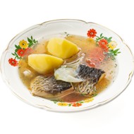 Pour the fish bones with rooster broth, place on the heat, and bring to a boil. Skim off the foam and simmer on low heat for another 2–2.5 hours. Strain the finished broth through cheesecloth. Discard the bones from the broth.